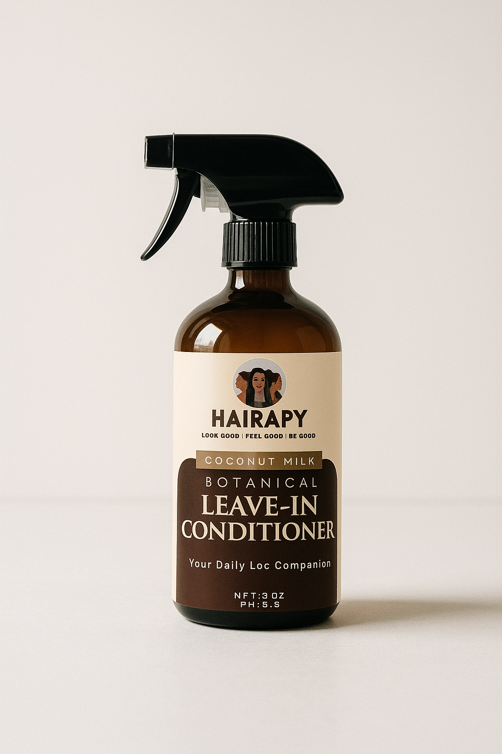 Meet your daily loc companion. Hairapy’s leave-in conditioner delivers lasting hydration, softness, and manageability without buildup. Infused with aloe, argan, and nourishing oils, this lightweight formula detangles effortlessly, leaving your loos silky. smooth, and full of life.